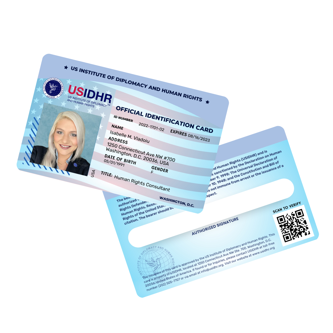 What is the purpose of the USIDHR Consultant ID card program? The ID cards allow consultants to legitimize themselves in front of public and private authorities, who must treat them with due respect.